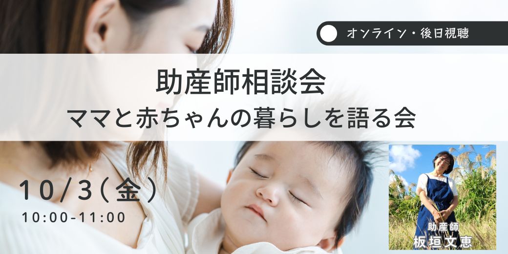 沖縄で「助産院むすびや」を開業し、多くの命の誕生に寄り添ってきた助産師 板垣文恵さん をお迎えし、ママと赤ちゃんの暮らしについて自由に語り合う相談会を開催します。